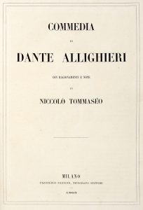 Alighieri Dante, Commedia [...] con ragionamenti e note di Niccolò Tommaseo. Milano: Francesco Pagnoni, 1865.