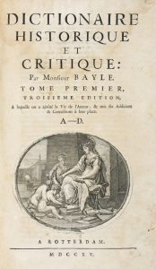 Bayle Pierre, Dictionnaire historique et critique [...] troisieme édition. Tome premier (-troisieme). A Rotterdam: S.e., 1715.
