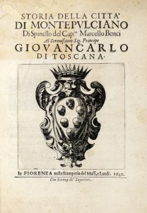 Benci Spinello, Storia della città di Montepulciano. In Fiorenza: nella stamperia del Massi, e Landi, 1641.