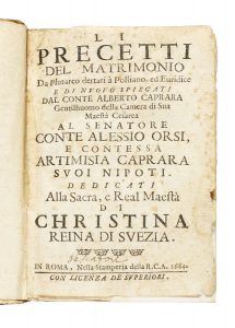 Caprara Alberto, Li precetti del matrimonio da Plutarco dettati à Polliano, ed Euridice... In Roma: nella stamperia della R.C.A., 1684.