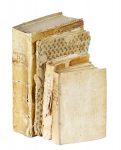 In-8° (mm 155x105). Pagine [16], 168. Fregio xilografico al frontespizio, e numerosi fregi incisi in legno a mo' di testatine, capilettera e finalini nel testo. Copia fiorita, con strappetti e macchioline ad alcune carte e con l'angolo inferiore esterno della seconda carta non numerato assente e reintegrato con carta bianca. Legatura in cartonato, con titoli manoscritti su tassello al dorso. Internamente allentata e con lievi macchie ai piatti. SI AGGIUNGE: Diodato Andrea, Compendio di perfezione ovvero Corona di dodici virtù pe' dodici mesi dell'anno... In Firenze: nella stamperia di Gio. Batista Stecchi, 1745. In-8° (mm 165x108). Pagine [8], 220, [2]. Frontespizio in rosso e nero con fregio xilografico, e numerosi fregi incisi in legno nel testo. Un foro di tarlo all'ultima carta di Errata e un rinforzo al margine esterno di pagina 37-38. Legatura in piena pergamena coeva rigida, con dorso manoscritto ma quasi completamente assente e tagli spruzzati. Mancanze e fori di tarlo ai piatti; note di conto manoscritte al piatto anteriore. Molti gravi difetti. INOLTRE: Lettera sopra la cicisbeatura [...] Edizione seconda... In Firenze: per Gio. Batista Stecchi, e Anton-Giuseppe Pagani, 1770. La Colombière Claude, Sermoni sacri [...] Nuovamente tradotti dalla lingua francese nell'italiana [...] Tomo primo (-secondo). Venezia: nella stamperia Baglioni, 1737. (4)