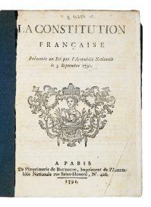 La Constitution française. Présentée au Roi par l'Assemblée Nationale le 3 septembre 1791. A Paris: De l'Imprimerie de Baudouin, 1791.