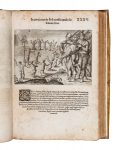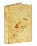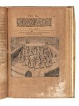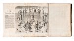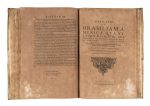 3 parti in 1 volume in-folio (mm 352x242). Pagine 34, [6] + 1 tavola a piena pagina fuori testo + 23 tavole numerate I-XXIII, alcune corredate da carta didascalica, + 5 tavole a piena pagina non numerate + [15]. Prime e ultime carte restaurate marginalmente con pecette cartacee di rinforzo, brunite alcune delle carte. Variante B, con il fascicolo B di 8 carte (OPAC). LEGATO CON: Id., Brevis narratio eorum quae in Florida Americae provincia Gallis acciderunt, secunda in illam navigatione... Francoforti ad Moenum: typis Ioannis Wecheli sumtibus vero Theodori de Bry venales reperiuntur in officina Sigismundi Feirabendii, 1591. Pagine [8], 30 + 1 carta ripiegata. 2_bis) Indorum Floridam provinciam inhabitantium eicones, primum ibidem ad vivum... Francoforti ad Moenum: typis Ioannis Wecheli sumtibus vero Theodori de Bry venales reperiuntur in officina Sigismundi Feirabendii, 1591. Carte [2], XLII, [14].LEGATO CON: Id., Americae tertia pars memorabilem provinciae Brasiliae historiam continens germanico primum sermone... [Francoforte]: venales reperiuntur in officina Sigismundi Feirabendii, s.d. (Al colophon: Impressum Francofurti ad Moenum apud Matthiam Beckerum impensis Theodori de Bry, 1595). Pagine [16], 296, [16] + 1 carta ripiegata. Diffuse bruniture. Legatura in piena pergamena floscia con titolo al dorso e cornici dorate ai piatti. Macchie ai piatti, usura lungo le unghiature.