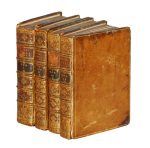 3 parti in 4 volumi in-4° (mm 217x153). Pagine 4, [4], 380, [30], [2] bianche; [12], 492, [23], [2] bianche; [2], 546, [26]; [8], 508, [18], [2] bianche. Marca calcografica al frontespizio del primo volume; xilografica nel altri. Con numerose testatine, capilettera e finalini incisi in legno nel testo. Copia brunita, con una gora al margine superiore di tutti e quattro i volumi. Legatura ottocentesca in piena pelle, con cornici dorate ai piatti, fregi e titoli in oro su doppio tassello al dorso a 5 nervi, tagli rossi e sguardie in carta marmorizzata. Alcuni difetti: staccati i piatti del primo volume, quello anteriore del quarto e molto allentati gli altri. Parzialmente mancante un tassello del primo volume e totalmente assente il primo tassello del terzo. Difetti alle cerniere; abrasioni, macchie e mancanze ai piatti. (4)