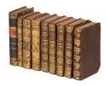 3 volumi [di 4] in-8° (mm 158x89). Pagine [28], 284 con 6 tavole ripiegate fuori testo e 48 tavole a piena pagina nel testo; 581-988 con 4 tavole fuori testo e 6 nel testo; 989-1148 con 1 tavola nel testo. Copia scompleta del 2 volume. SI AGGIUNGE: Id., Rome moderne, premiere ville de l'Europe, avec toutes ses magnificences et ses delices... Tomi 1, 4, 5 e 6. A Leide: chez Pierre vander Aa, 1713. 4 volumi [di 6] in 8° (mm 158x89). Pagine [28], 298, 2 bianche con 11 tavole fuori testo e 17 nel testo; [4], 807-1098, 1098*1-1098*48 con 6 tavole fuori testo e 23 tavole nel testo; [4], 1099-1426 con 4 tavole fuori testo; [4], 1427-1738 con 3 tavole fuori testo. Esemplare scompleto dei tomi 2 e 3, con uno strappo e maldestro restauro a una delle carte ripiegate del IV volume di Rome moderne. Legatura coeva uniforme in piena pelle con titoli in oro al dorso. Tagli rossi, sguardie in carta marmorizzata. SI AGGIUNGONO: Fauno Lucio, Delle antichità della citta di Roma... (Al colophon:) In Venetia: per Michele Tramezzino, 1548. In-8° (mm 155x100). Carte [10], 157, [23]. Grande fregio in legno al frontespizio. Esemplare gorato, con l'ultima carta ricostruita e scompleto della carta ripiegata. Legatura in piena pelle con titolo in oro su tassello al dorso. Vasi Mariano, Itineraire instructif de Rome ancienne et moderne... Tome second. A Rome: chez l'auteur, rue du babouin, 1818. In-8° (mm 165x95). Il solo volume secondo. (9)