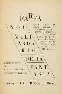Farfa (pseud. di Vittorio Tommasini) -, Noi miliardario della fantasia [...] presentazione di S. E. Marinetti. Milano: edizioni La Prora, [1933].