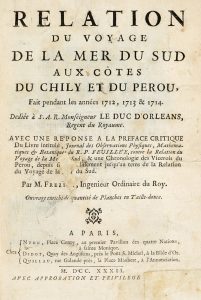 Frezier Amedee Francois, Relation du voyage de la mer du Sud... A Paris: chez Nyon, Didot, Quillau, 1732.