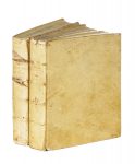 2 volumi in-4° (mm 212x155). Pagine [28], 591, 1 bianca; [20], 543, 1 bianca. Fregi xilografici al frontespizio di ciascun volume. Due strappi nell'angolo superiore esterno delle carte 2H6 E 2I1 del primo volume, gore d'acqua e un lavoro di tarlo nel margine interno dei primi fascicoli del secondo. Nel complesso buona copia, completa. Legatura in piena pergamena rigida con titolo manoscritto al dorso. Alcune mancanze alle cuffie e al dorso. (2)
