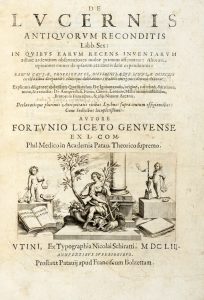 Liceti Fortunio, De lucernis antiquorum reconditis... Utini: ex typographia Nicolai Schiratti, 1652.