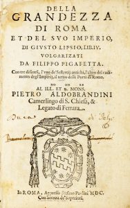 Lipsius Justus, Della grandezza di Roma e del suo imperio [...] lib. IV. Volgarizati da Filippo Pigafetta... In Roma: appresso Stefano Paolini, 1600.