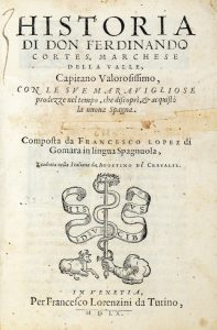 Lopez de Gómara Francisco, Historia di don Ferdinando Cortes [...] che discoprì, & acquistò la nuova Spagna. Parte terza. In Venetia: per Francesco Lorenzini da Turino, 1560.