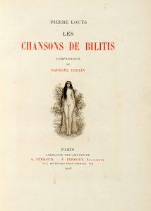 Louÿs Pierre, Les chansons de Bilitis. Compositions de Raphael Collin. Paris: A. Ferroud, 1906.