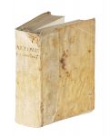2 [di 3] parti in 1 volume in-4° (mm 245x175). Carte manoscritte 7, pagine [8], 388; 4, 243, 1 bianca. Esemplare interamente interfoliato nel XVIII secolo. Scompleto della seconda parte (Hypomnemata), con frontespizio controfondato e gore passim. Legatura settecentesca in piena pergamena floscia con titolo manoscritto al dorso. Legatura parzialmente slegata, con macchie ai piatti. L'opera è fittamente postillata - sia sulle carte aggiunte che nel testo - da mano antica in lingua spagnola. Notazione di possesso manoscritta di medesima mano al frontespizio.