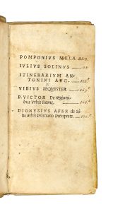 Mela Solinus Victor Pomponius Caius Iulius Dionysius Periegetes Vibius Sequester Publius, Pomponius Mela Iulius Solinus Itinerarium Antonini Aug. Vibius Sequester P. Victor De regionibus vrbis Romae. Dionysius Afer De situ orbis Prisciano interprete....