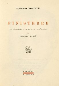 Montale Eugenio, Finisterre con autografi e un ritratto dell'autore di Giacomo Manzù. Firenze: Barbera, s.d. [1945].