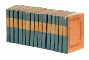 15 volumi in-8° (mm 215x135). Pagine VI, 284, [2] + 1 ritratto dell'Autore in antiporta inciso in rame; [4], 292, [2]; IV, 299, [1]; [4], 298, [2]; [4], 248, [4]; 4], 300; [4], 335, [1]; [4], 342, [2]; [4], 338, [2]; [4], 261, [3]; [4], 307, [1]; [4], 341, [1]; [4], 285, [3]; [4], 278, [2]; 311, [1]. Copia marginosa, parzialmente in barbe. Ampie fioriture, con forellini di tarlo, strappetti marginali ad alcune pagine, il primo fascicolo del primo volume e l'ultimo del decimo parzialmente staccati e le ultime due pagine del dodicesimo volume mancanti. Nel complesso buone condizioni. Brossura con titoli impressi in oro su tassello di pelle al dorso ed entro cornice fitomorfa ai piatti. Dorso rinforzato; macchie, fioriture e strappetti. Ex-libris manoscritto al piatto anteriore di alcuni volumi. (15)