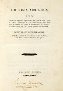 Olivi Giuseppe, Zoologia Adriatica. Ossia catalogo ragionato degli animali del Golfo e delle Lagune di Venezia... Bassano: s.e., 1792.