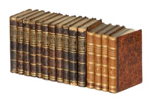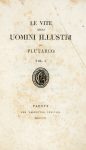 11 [di 12] volumi in-8° (mm 220x130). Legatura in mezza pelle con piatti in cartonato e titoli in oro al dorso. Scompleto del volume n. 11. SI AGGIUNGONO: Id., Opuscoli morali [...] volgarizzati da Marcello Adriani. Tomo IV-VI. Firenze: dalla stamperia Piatti, 1820. I soli tomi 4, 5 e 6 dell'opera. Legatura in mezza pelle con piatti in cartonato e titoli in oro al dorso. Id., Le vite degli uomini illustri [...] volgarizzate da Girolamo Pompei. Tomo VI. Firenze, dalla stamperia Piatti, 1823. (15)