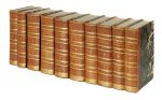 10 volumi in-8° (mm 230x155). Pagine [14], 523, [1] + 1 antiporta calcografica a colori e 16 tavole fuori testo incise in rame, molte delle quali a colori; 558, [2] +14 tavole a colori fuori testo incise in rame, 1 più volte ripiegata; [4], 759, [1] + 28 tavole fuori testo incise in rame, molte delle quali a colori, 1 più volte ripiegata; 747, [5] + 24 tavole fuori testo incise in rame, molte delle quali a colori, 1 più volte ripiegata; 714 [i.e. 724], [8] + 22 tavole fuori testo incise in rame, molte delle quali a colori; 856, [2] + 27 tavole fuori testo incise in rame, molte delle quali a colori, 1 più volte ripiegata; 607, [1] + 10 tavole a colori fuori testo incise in rame, 3 più volte ripiegate; 660 + 50 tavole fuori testo incise in rame, molte delle quali a colori, 2 più volte ripiegate; 189 tavole calcografiche, in bianco e nero e a colori, numerate I-CLXXXIX; 180 tavole calcografiche, in bianco e nero e a colori, numerate CXC-CCCLXX. Esemplare in barbe, parzialmente intonso, con testo su due colonne. Una carta al primo volume delle tavole staccata, ma ben conservata, piccoli strappi marginali, tracce di foxing ad alcune carte e lievi bruniture, altrimenti buone condizioni. Legatura coeva in mezza pelle con piatti in carta marmorizzata, fregi e titoli in oro al dorso a 4 nervetti. Evidenti segni di usura e abrasioni al dorso e ai piatti. (10)