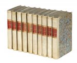 10 volumi in-4° (mm 256x180). Pagine [2], VIII, 399, [1] con 9 tavole fuori testo, di cui 1 ritratto dell'Autore in antiporta e 8 tavole ripiegate; [2], VIII, 356 con 5 tavole ripiegate fuori testo; VI, 362 con 6 tavole ripiegate fuori testo; VIII, 360 con 5 tavole fuori testo; LXXII, 336 con 6 tavole ripiegate fuori testo; XVIII, 390 con 5 tavole ripiegate fuori testo; VI, 335, [1] bianca con 4 tavole, di cui 3 ripiegate e una a piena pagina; VI, 396 con 4 tavole fuori testo, di cui 2 a piena pagina e 2 ripiegate; VIII, 351, [1] con 2 tavole ripiegate; XII, 389, [1] bianca con 1 tavola ripiegata fuori testo. Nel complesso 47 di 48 tavole fuori testo: mancante una delle tavole del settimo volume. Esemplare ampiamente gorato, con piccoli restauri e strappi marginali a parte delle tavole. Legatura in mezza pergamena moderna con angoli, piatti marmorizzati e titoli dorati su doppio tassello al dorso. Trascurabili tracce d'uso ai piatti di alcuni volumi. (10)