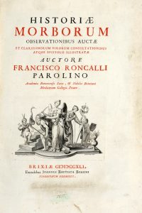 Roncalli Parolino Francesco, Historiae morborum... Brixiae: excudebat Joannes Baptista Bossini, 1741.