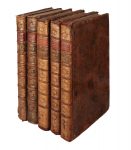 5 volumi in-folio (mm 495x215). Pagine [6], XIII, [3], 252, con 51 carte di tavole, di cui 3 carte geografiche; [4], XXVIII, 1-108, [6], 109-283, [1], con 83 carte di tavole, di cui 2 carte geografiche; [4], IV, XL, 22, 8-22*, 23-98, [4]*, 99-130, 1-6*, [2]*, 131-201, [1] con 65 carte di tavole, di cui 2 carte geografiche; [8], XVIII, 194 con 52 tavole; 195-362, [4], IV, [2], 363-429, [1] con 39 tavole. Con nel complesso 290 (di 303) tavole incise in rame fuori testo. Grande vignetta calcografica ai frontespizi, dedica incisa a Maria Antonietta, molte testatine e finalini calcografici. Nella nostra copia la celebre tavola del Phallus è presente ma mancano 13 tavole e 3 tavole sono più corte di margini; le 14 carte (paginate e non) del terzo volume con la Relation des tremblemens de terre si trovano legate fuori posto: le pagine 8-22 dopo pagina 22, le prime [4] dopo pagina 98, le pagine [2], 1-6 dopo pagina 130. Bruniture lievi in tutti i volumi, occasionalmente più accentuate, strappo riparato a una carta di testo del V volume. Legature non omogenee coeve in piena pelle maculata con roulette floreale impressa in oro ai piatti dei primi due e roulette a foglioline nei piatti dei restanti volumi, titoli dorati su tasselli al dorso a 7 nervi. Cerniera anteriore del primo volume rovinata, lacune alle cuffie degli ultimi 3. (5)