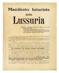 Saint-Point Valentine de Valentine, Manifesto futurista della lussuria. Milano, Direzione del Movimento Futurista (Tip. A. Taveggia). Datato 11 gennaio 1913.