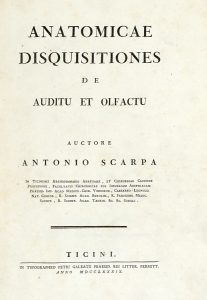 Scarpa Antonio, Anatomicae disquisitiones de auditu et olfactu... Ticini: in Typographeo Petri Galeatii, 1789.