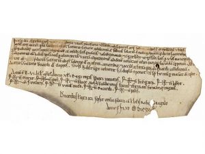 el precio de 5 sous. Afronta a levante con Mataró, a mediodia y poniente con un terreno de Bernat Vilalleó y a tramuntana con la bodega de Bernat de Clapers. Notario: Bernat, clérigo. Pergamino, 10x25 cm.