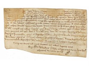 1191. (VIC). VENTA DE UNA CASA EN VIC. 30 de Abril de 1191. Pergamino, 10x18 cm. Pere Llobet de Saler, su mujer Raimunda, y sus hijos Guillem y Bernat, venden a Raimon Vida, a su mujer Vilarderia, y a sus hijos una casa que tienen a la vila de Vic,...