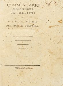 Voltaire François-Marie Arouet (de), Commentario sopra il libro De i delitti e delle pene... S.l.: S.e., 1767.