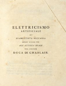 Beccaria Giambattista, Elettricismo artificiale. (In Torino: nella Stamperia reale, 1772 il primo di giugno).