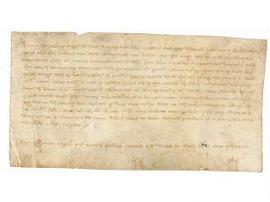 Pergamino 11x20 cm. Notario: Mestre Pere, notario público de Manresa.