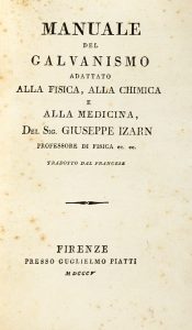 Izarn Joseph, Manuale del galvanismo adattato alla fisica, alla chimica e alla medicina... Firenze: presso Guglielmo Piatti, 1805.