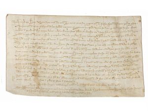 1298. (VIC- ST. JOAN DE LES ABADESES). BERENGUER ESTANY, ESCRITOR DE VIC, EN SU NOMBRE Y EL DE SU MUJER PAGAN DOS GALLINAS POR LA CASA QUE HABITAN EN SANT JOAN DE LES ABADESES (MONASTERIO), DE LA QUE ES PROPIETARIO. Pergamino. 16x27,5 cm.