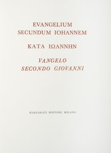 Il Vangelo secondo Giovanni [...] Xilografie di Alessandro Nastasio. [Milano: Marzorati editore, 1970].