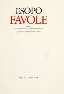 Aesopus, Favole a cura di Enzo Mandruzzato e Giorgio Bernardi Perini. Acqueforti e disegni di Valeria Vecchia. Venezia: Neri Pozza, 1980.