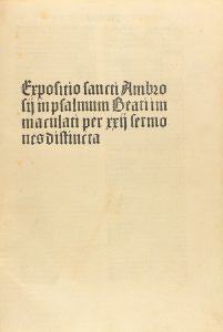 .[1492].. LIBRO: .(SERMONES).. .AMBROSII:. .I- EXPOSITIO SANCTI AMBROSII IN PSALMUM BEATI IMMACULATI PER XXII SERMONES DISTINCTA. II- EXPOSITIO... IN EVANGELIUM SECUNDUM LUCAM. III- (...) SUPER EPISTOLAS PAULI.. [Basilea: Johann Amerbach, 1492]. 3...