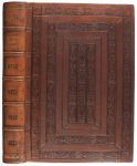 y dos columnas. 26 h. + CCLIIII fol. (en realidad 255, porque el fol.V, repite foliación). En recto de B8 grabado a toda página del ´rey don Juan II´ y a ambos lados retratos de Doña María, Don Enrique, Doña Catalina, Doña Leonor, Doña Ysabel, Don Alonso, Doña Ysabel, Fray Vicente, rodeado por orla de madera, los nombres todos en tinta roja. La primera hoja de texto, con gran letra capital ´G´, con el rey sentado en su trono. Marca tipográfica del impresor grabada en madera en el colofón. La portada y la hoja 10 (signatura +10) que lleva al dorso la Crucifixión son facsímiles. Última hoja con restauraciones marginales que no afectan el texto y conserva en el recto de la hoja una anotación manuscrita de época. Enc. firmada por ARIAS en plena piel con hierros secos en ambos planos, de estilo renacentista, nervios, cortes dorados. Buen ejemplar. PRIMERA EDICION DE LA MÁS BELLA CRONICA PUBLICADA EN ESPAÑA DURANTE EL S.XVI. Este es el libro más bello salido de las prensas de Brocar en Logroño, y fue un encargo del emperador Carlos V. Arnao Guillén de Brocar era un impresor de origen francés que estuvo activo desde 1490 hasta 1523. Los ejemplares completos de esta obra son escasos y del gran número de ejemplares que minuciosamente Martín Abad ha descrito de las bibliotecas públicas, podemos constatar que los ejemplares completos son escasos, y uno como el que presentamos es una gran pieza para una biblioteca de bibliófilo. Salvá 3117. Heredia 3131, menciona que el ejemplar Salvá tenia la portada y el último folio cortados y remontados. Palau 64966. Norton 427. Martín Abad 527.