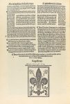 ETIA[M] MANUS SCRIPTIS DE VERBO AD VERBU[M] ASSATIM RECOGNITA.... Venecia: Luca Antonio de Giunta Florentini, die ix de Julii 1523. 4º mayor. 8 h.+ 97 fol. Tipografía gótica de dos tamaños, texto a dos columnas y con los comentarios alrededor. 67 líneas. Letras capitales xilográficas. Enc. firmada por BRUGALLA en pleno marroquen color marrón oscuro, nervios y hierros secos entre ellos, doble recuadro de filetes con hierro en las esquinas en los planos, cortes dorados. Magnífico ejemplar con anchos márgenes. Una preciosa edición y de las más completas de comentarios publicada dentro del primer cuarto de siglo XVI. Al final la bella marca del impresor y humanista Luca Antonio de Junta.