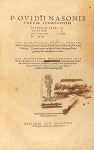 .1550.. LIBRO: .(LITERATURA CLÁSICA).. .OVIDII NASONIS, P.:. .FASTORUM LIBRI VI. TRISTIUM V. DE PONTO IIII. IN IBIN CUM COMMENTARIIA DOCTISS. VIRORUM, Ant. Constantii Fanensis, Pauli Marsi.... Basilae: per Ioannem Hervagium, 1550. Folio menor. 4 h....