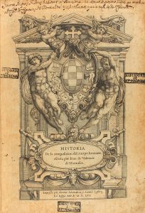 .1556.. LIBRO: .(CIENCIAS- MEDICINA).. .VALVERDE DE HAMUSCO, JUAN:. .HISTORIA DE LA COMPOSICION DEL CUERPO HUMANOM ESCRITA POR.... Roma: Imp. Antonio Salamanca y Antonio Lafrerii, 1556. 4º mayor. 12 h (portada grabada incluída) + 106 fol. numerados...