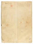 Apud haeredes Antonii Bladi Impressores Camerales, 1568. 8º menor. 14 h. Impreso sobre vitela. Tres grabados xilográficos en la portada y un grabado de San Bernardo al verso. Grandes capitales grabadas. Alguna sombra de humedad marginal. Lleva al final y manuscrita un signum y anotación del notario de la curia Antonius Cursus. Cubiertas de vitela con anotación en el plano anterior y una cruz patada en rojo. Bulla para garantizar la libertad de movimiento de las órdenes mendicantes. Conocemos ejemplares sobre papel pero era común hacer una tirada más corta sobre vitela, esta copia forma parte de esa tirada limitada.