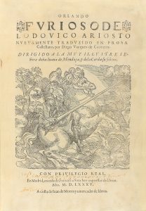 .1585.. LIBRO: .(LITERATURA).. .ARIOSTO, LUDOVICO; VAZQUEZ DE CONTRERAS, DIEGO (TRAD.):. .ORLANDO FURIOSO DE... nuevamente traduzido en prosa castellana por... Dirigido a la muy ilustre señora doña Juana de Mendoça, y de la Cerda su señora.....