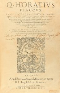 .1588.. LIBRO: .(LITERATURA-CLÁSICOS).. .HORATIUS FLACCUS, H.:. .EX FIDE, ATQUE AUCTORITATE COMPLURIUM LIBRORUM MANUSCRIPTORUM, OPERA DIONYSII LAMBINI MONSTROLIENSIS LITERARUM GAECARUM PROFESSORIS.... Lutetiae [Paris]: apud Bartholomaeum Macaeum,...