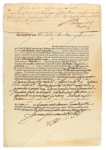 Impreso cpn espacios para rellenar de forma manuscrita. Un folio de papel verjurado con tipografía romana, a línea tirada. Cumplimentado en lengua catalana e italiana. Se adjunta la ´letra de cambio´ todo manuscrito. Firma del pagador ´Baltasar Miquel Pardinas´, permanecen juntos por una aguja. Excepcional documento ´letra de cambio´, entre comerciantes, y dos plazas fuertes de mercados: Barcelona y Piacenza. Este documento bancario es probabemente uno de los primeros impresos de estas características (año 1601) con toda la información impresa [formulario] y manuscrita [personajes, importes y moneda, y plazas de cambio]. Firmas autógrafas del pagador en la Letra de Cambio, y del Notario en el documento de certificación de la propia letra.