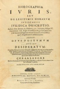 .1652.. LIBRO: .(DERECHO).. .NARBONA, DIDACO DE:. .HOROGRAPHIA IURIS, SEV DE LEGITIMIS HORARUM INTERVALLIS IURIDICA DESCRIPTIO.. Matriti [Madrid]: Didacus Diaz de la Carrera, 1652. Folio menor. Texto a dos columnas. 6 h. (inclusive retrato del autor...