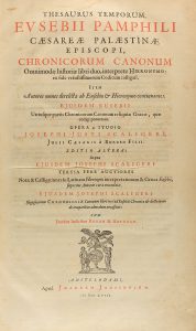 .1658.. LIBRO: .(HISTORIA CRISTIANA).. .CAESAREAE PALESTINAE, EUSEBII PAMPHILI:. .THESAURUS TEMPORUM... EPISCOPI CHRONICORUM CANONUM Omnimodae historiae libri duo, interprete Hieronymo... Opera ac studio JOSEPHI JUSTI SCALIGERI.... Amstelodami,...