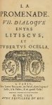 .1663-1664.. LIBRO: .(FILOSOFÍA).. .[MOTHE DE VAYER, FRANÇOIS DE LA:. .LA PROMENADE IV [a VII] DIALOGUE ENTRE TUBERTUS OCELLA ET XILINUS.. Pairs: Chez Louis Billaine, au Palais, dans le grand Salle, a la Palme, & au grand Cesar, 1663 - 1664. Dos...