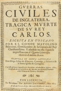 .1673.. LIBRO: .(HISTORIA-INGLATRERRA).. .BISACCIONI, MAYOLLINO CONDE DE:. .GUERRAS DIVILES DE INGLATERRA TRAGICA MUERTE DE SU REY CARLOS. ESCRITA EN TOSCANO POR.... Barcelona: por Antonio Lacavalleria, 1673. 8º mayor. 8 h. inclusive portada con...